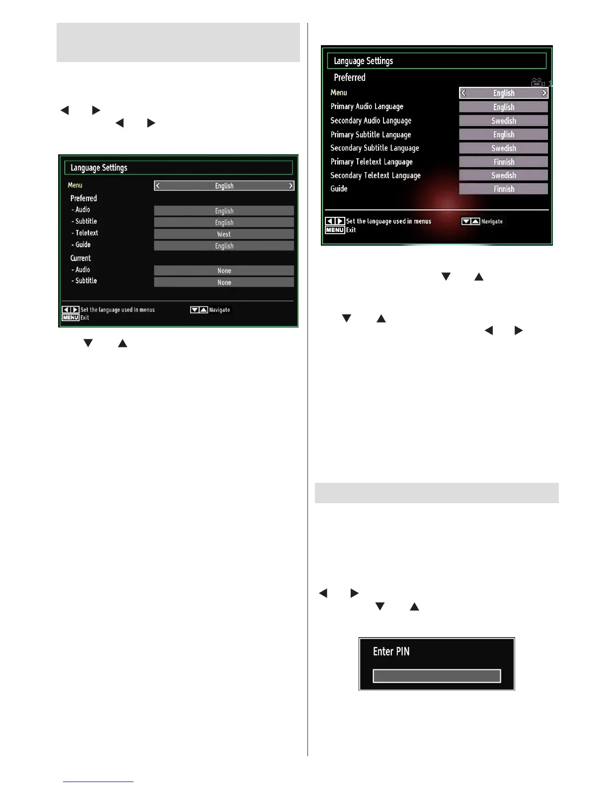 Norway or Finland, the Language Settings menu will