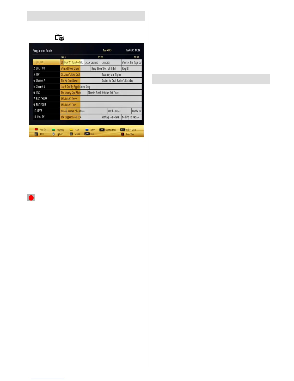 current and next programmes. Press the EPG button
