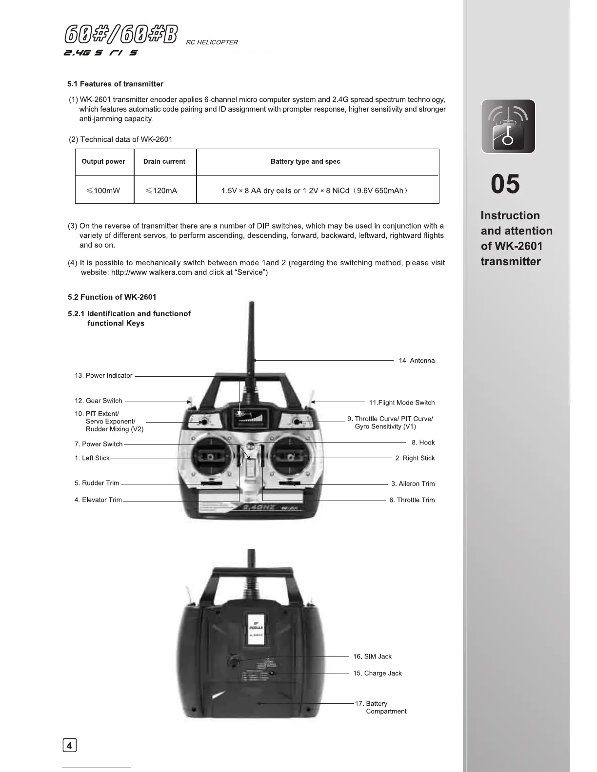 Walkera 60#B - 05 Instruction and attention of WK-2601 transmitter; 5.3 Instruction and attention of transmitter