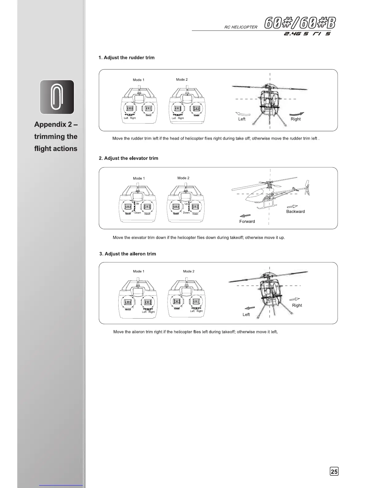 Walkera 60# - Appendix 2 - Trimming Flight Actions; Rudder, Elevator, and Aileron Trim