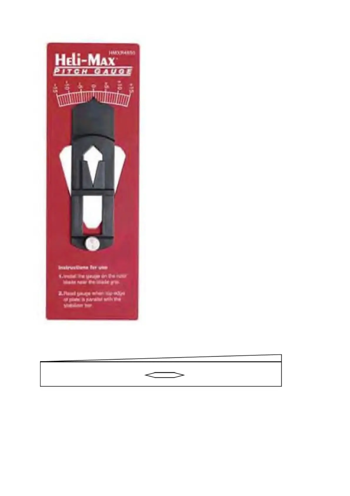 When the blade is pitched 5°, the upper edge will sight LEVEL with the flybar. See prior