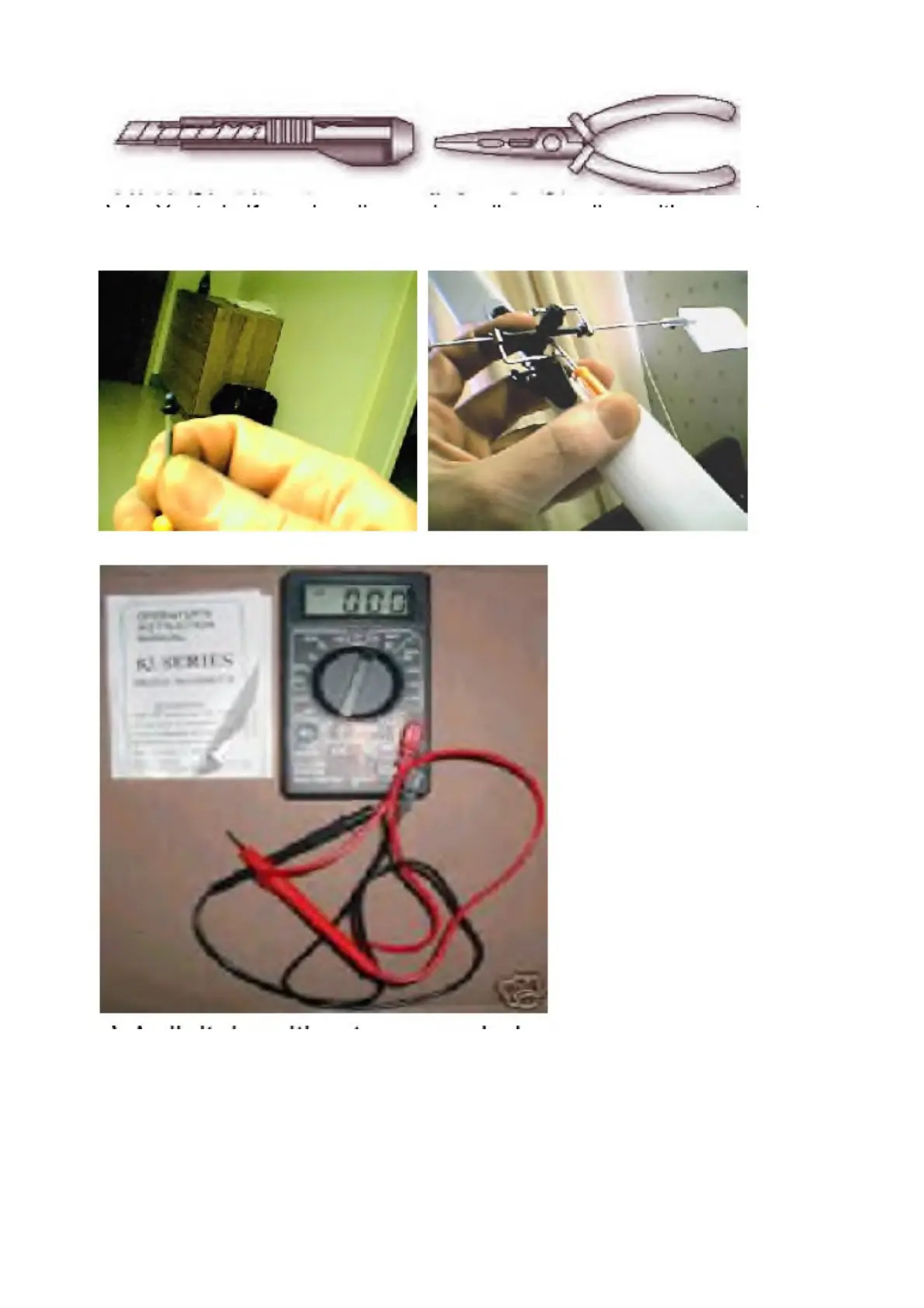 e) An Xacto knife and really good needle nose pliers with a cerated inner surface. We'll
