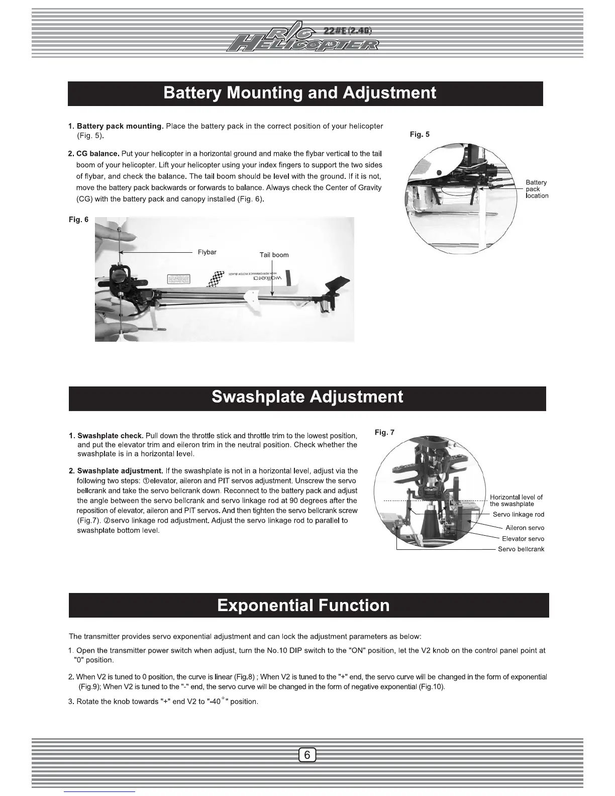 Walkera HM 22e - Battery Mounting and Adjustment; Swashplate Adjustment; Exponential Function