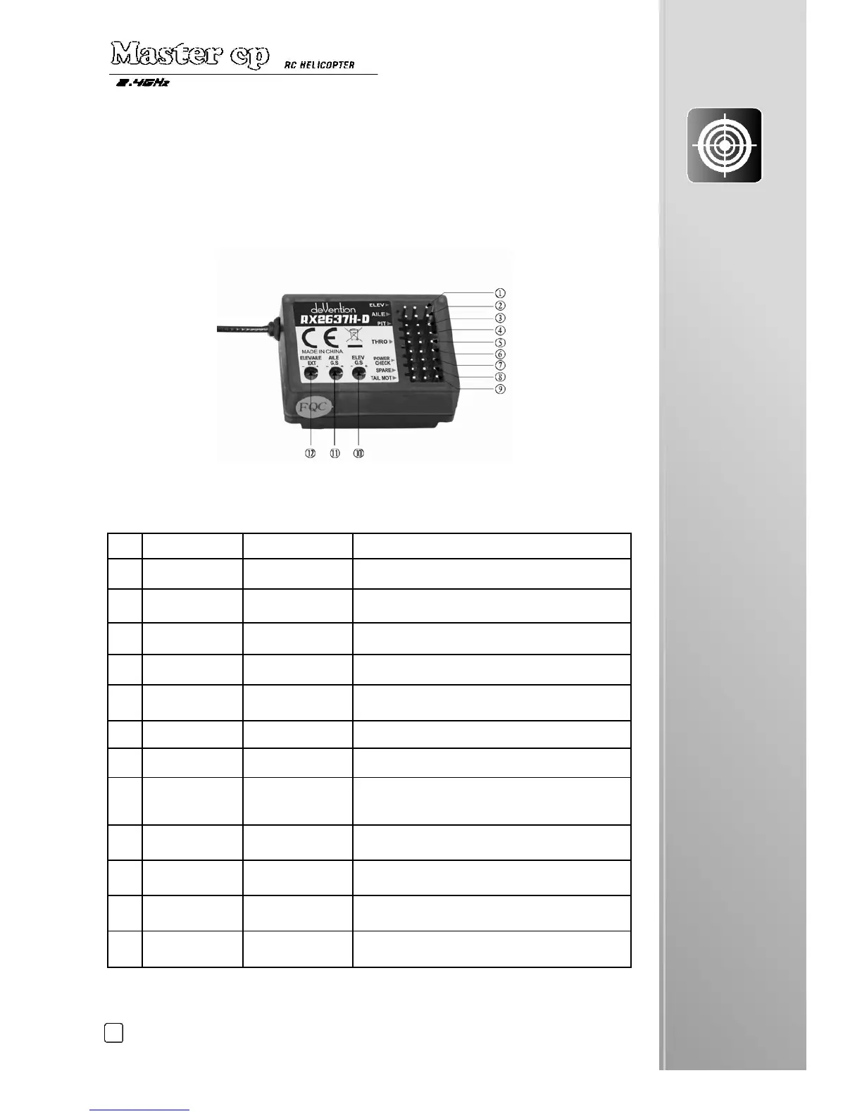 Aileron servo Connects to the aileron servo and receives the control