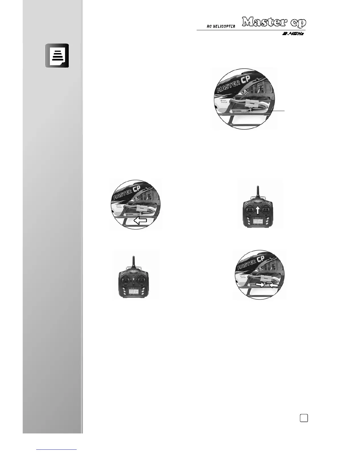 (2) If failed to connect the power cable of helicopter in 10 seconds after transmitter is turned on, please turn off