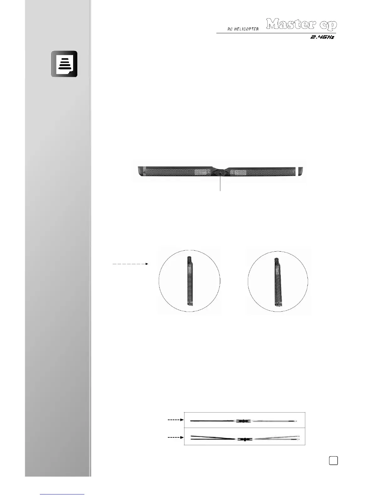 blades and screw the bolt cap, and then stretch the main rotor blades in line. Hang the couple of main rotor