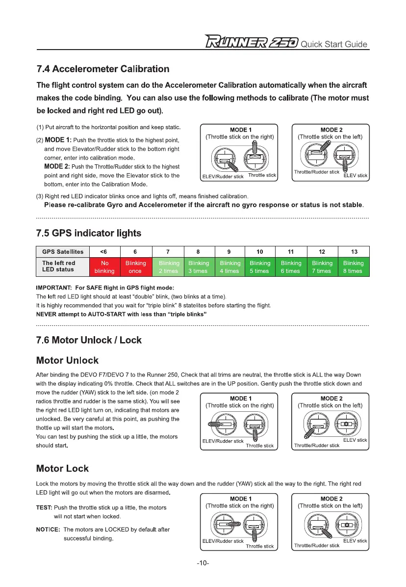 Please re-calibrate Gyro and Accelerometer if the aircraft no gyro response or status is not stable.