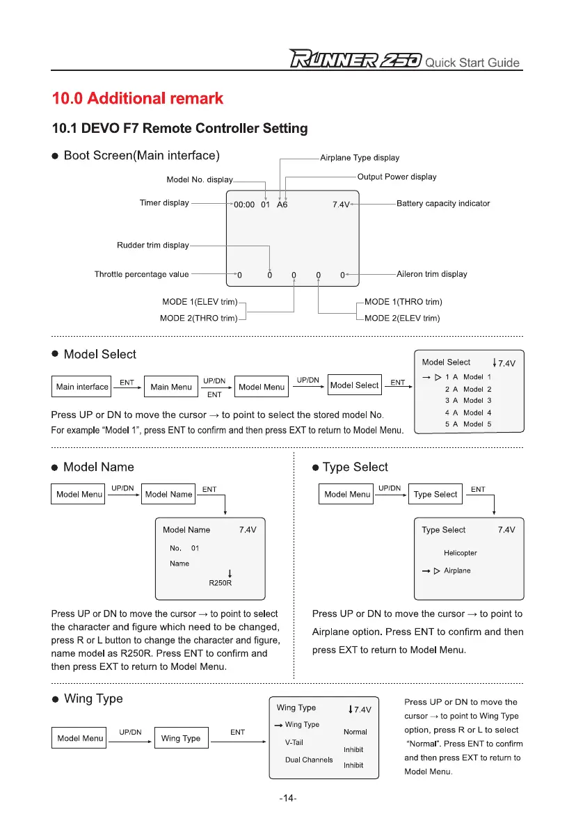 For example "Model 1", press ENT to confirm and then press EXT to return to Model Menu.