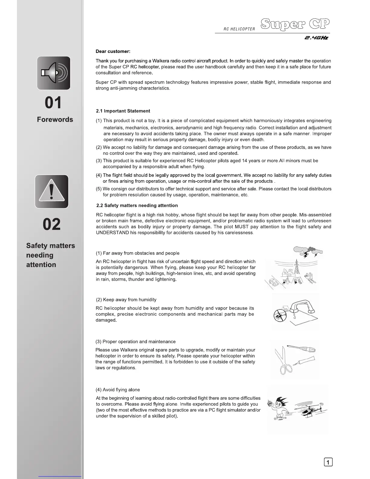 Walkera Super CP - 02 Safety matters needing attention; 2.1 Important Statement