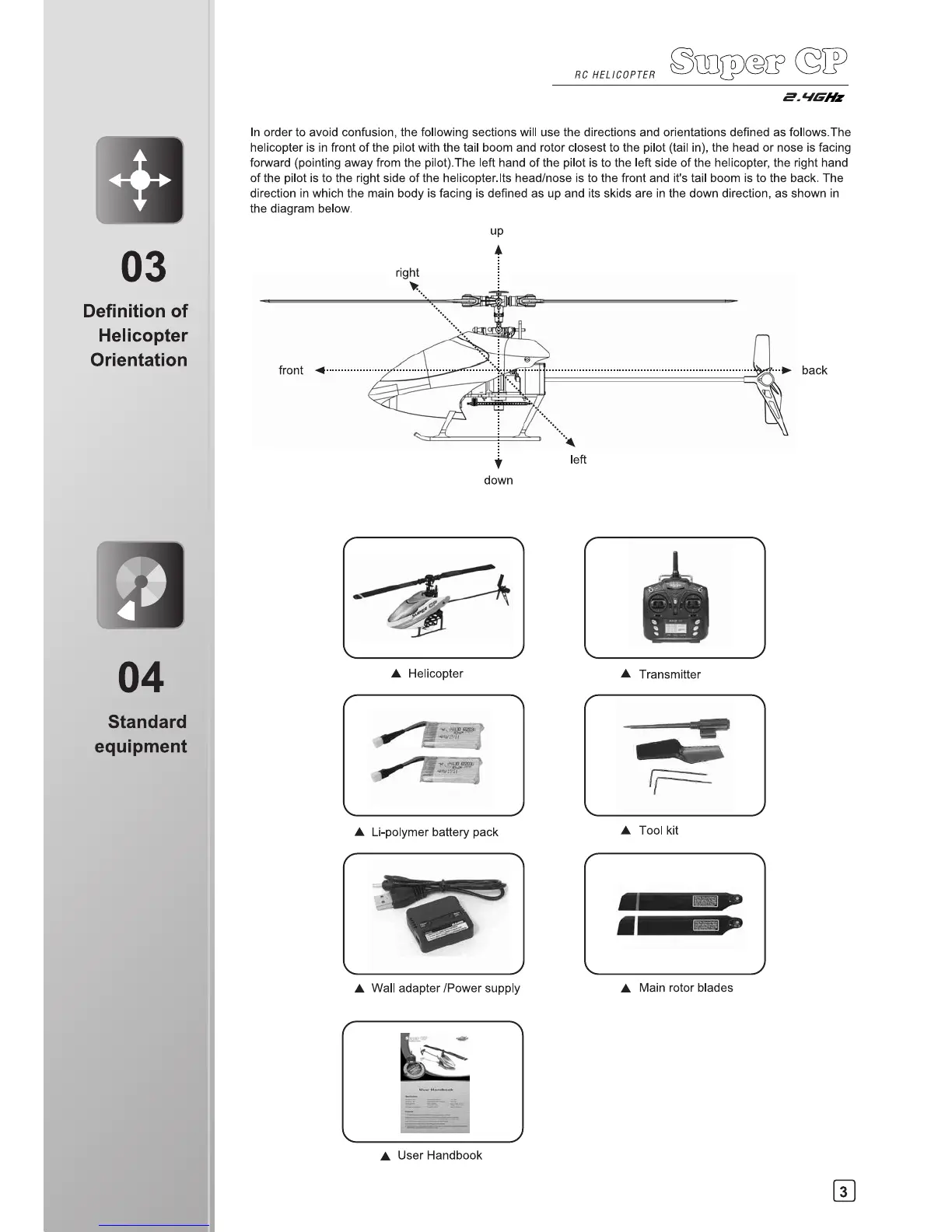 Walkera Super CP - Helicopter Orientation; Standard Equipment