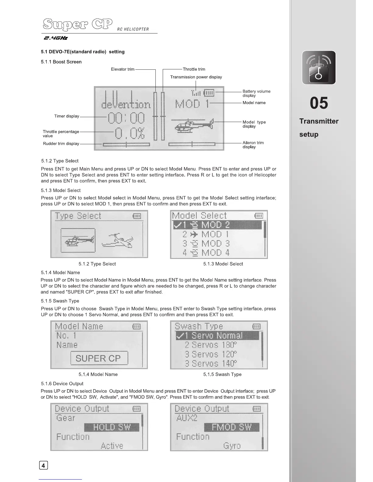 Walkera Super CP - 05 Transmitter setup; 5.1 DEVO-7 E(standard radio) setting