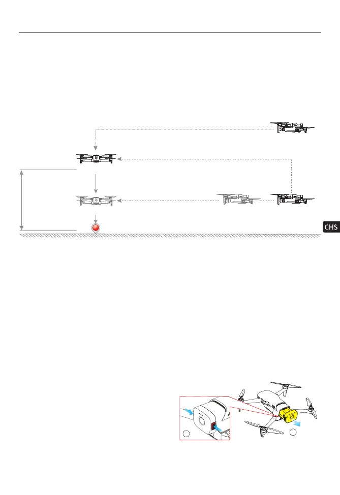 b. 当飞行器高度低于设定返航高度时,飞行器将保持现有的高度,自动返航至Home点上方,然后垂直降落。