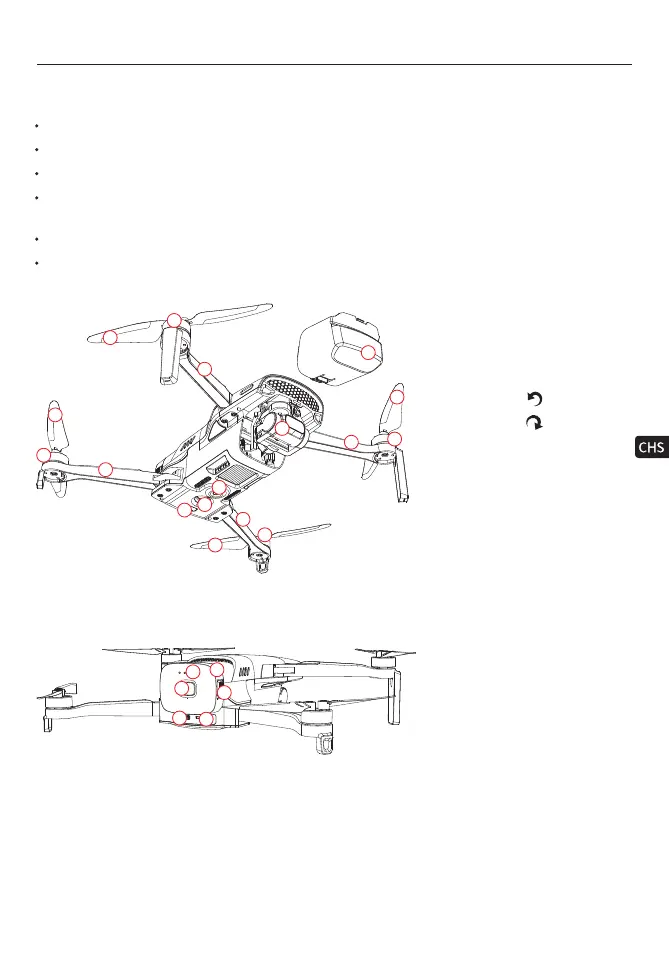 2) 高速旋转的螺旋桨有性,操作者应与飞行器保持安全距离并使飞行器远离人群、物、或其它