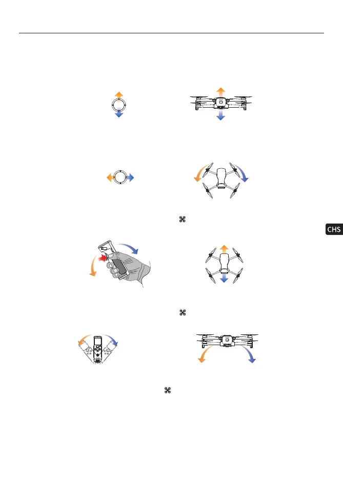 (飞行器解锁起飞后)语音手柄摇杆向上拨控制飞行器上升,语音手柄的摇杆向下拨飞控制行器下降。