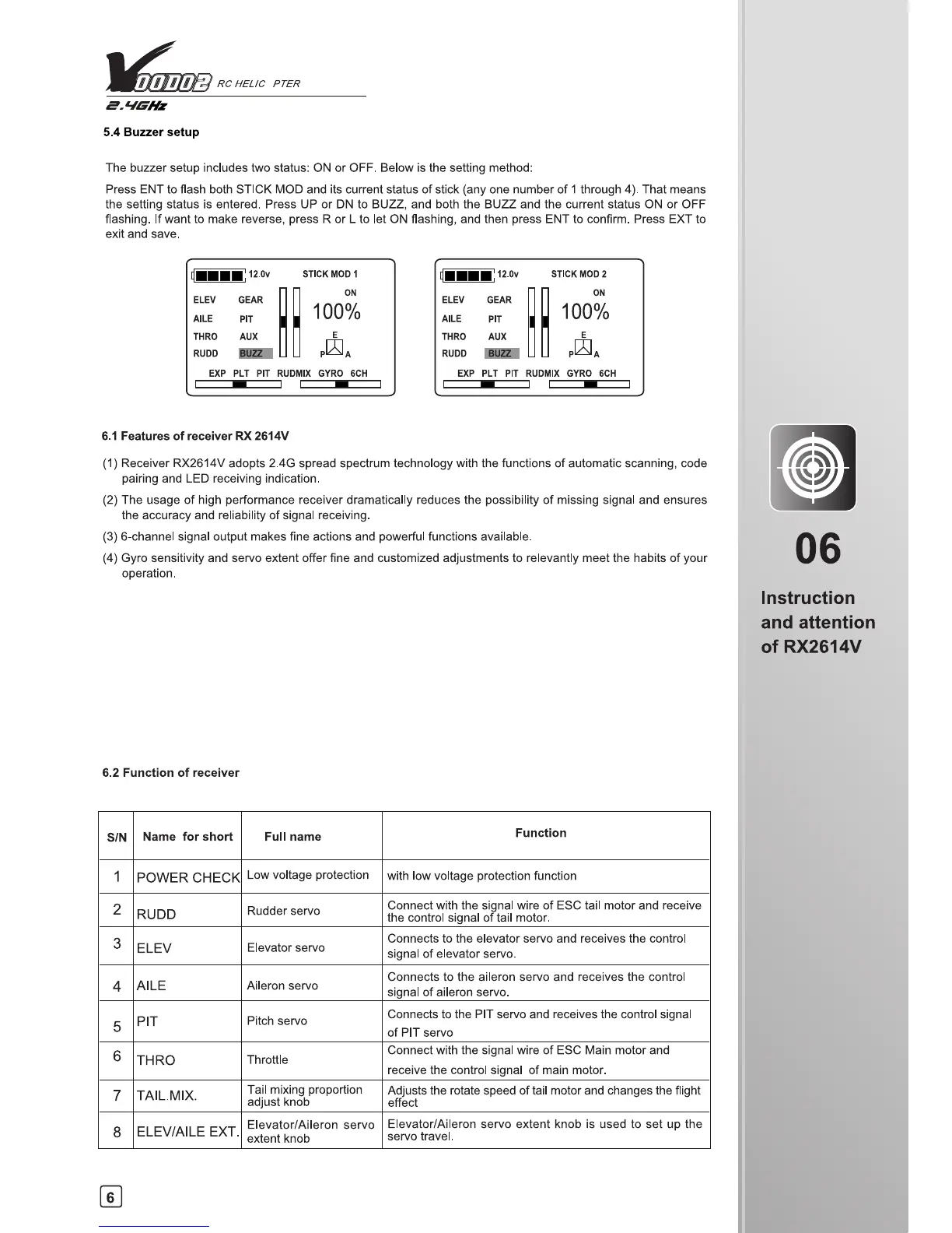 Walkera V400D02 - Instruction and Attention of RX2614 V Receiver; Function of Receiver