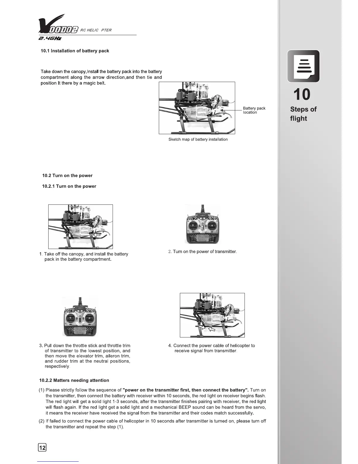 Walkera V400D02 - Steps of Flight; Turn On the Power; Matters Needing Attention