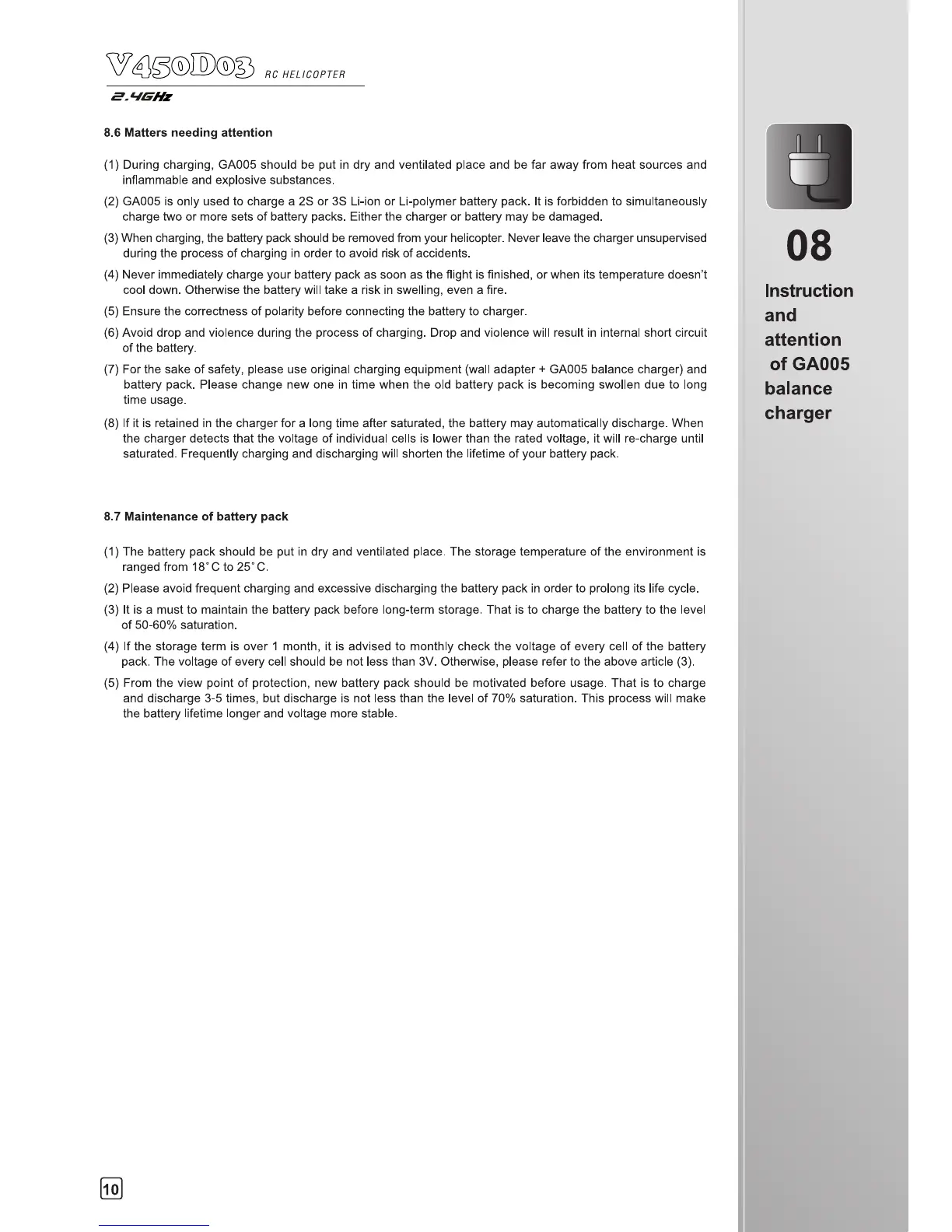 Walkera V450D03 - Matters needing attention; Maintenance of battery pack