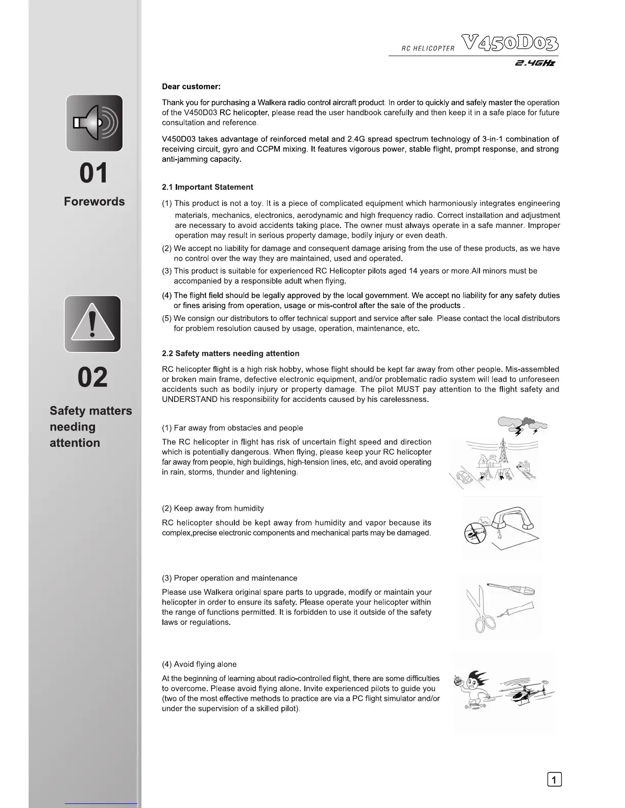Walkera V450D03 - Forewords; Important Statement; Safety matters needing attention