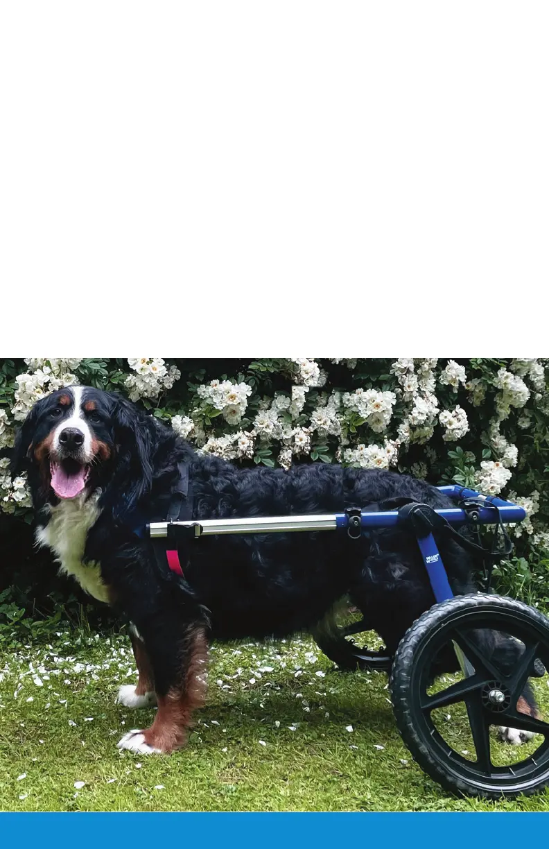 adjust the wheelchair, put your pet in it, and in a few moments