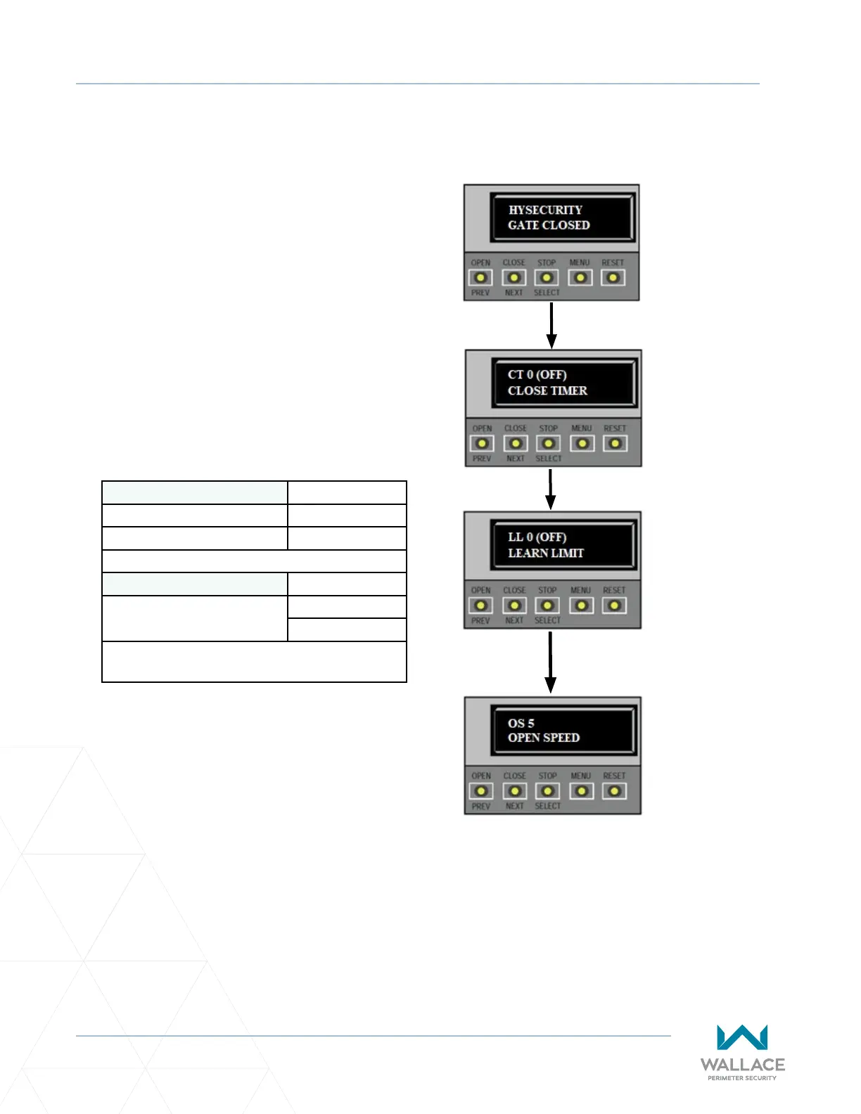 3. Press NEXT unl the OPEN SPEED (or CLOSE