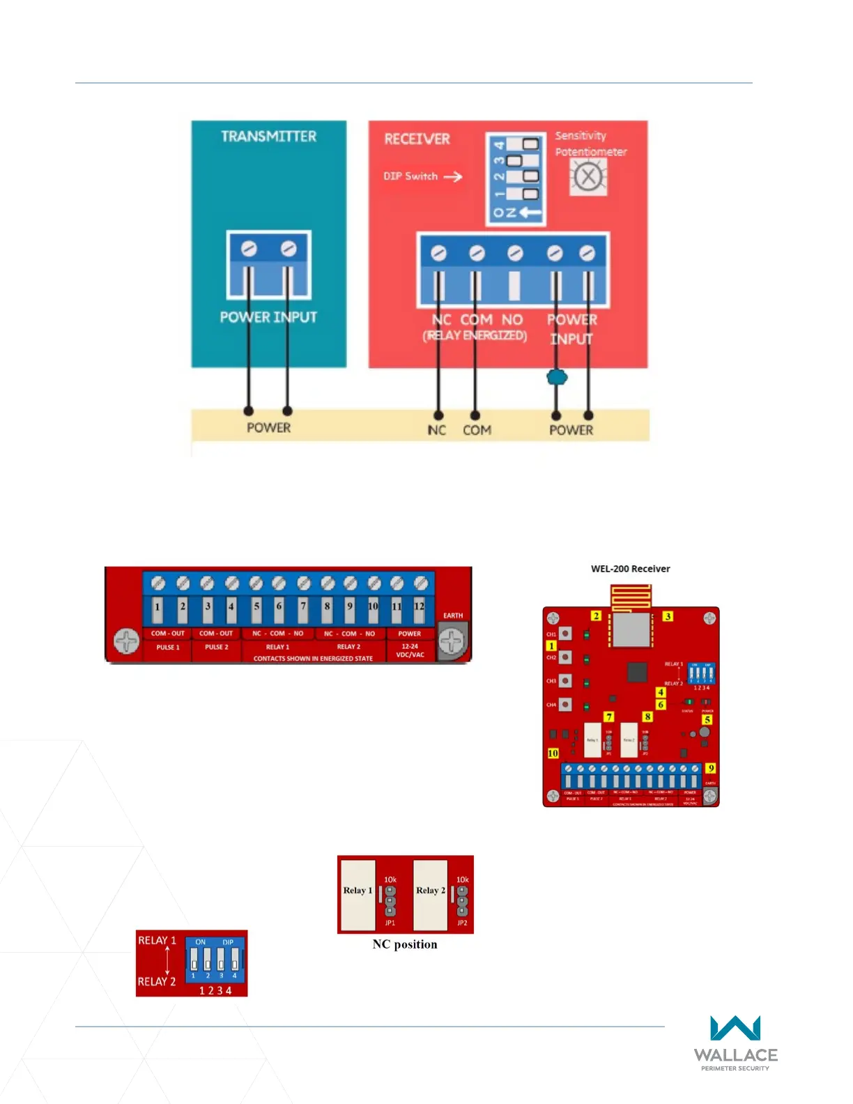 receiver combo (WEL-200 or iGAZE RE). Figure 46 below shows the wiring and dip switch sengs of a