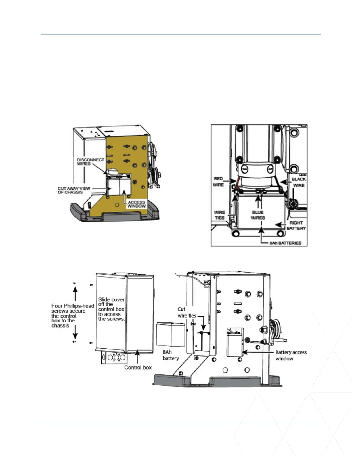 2� To access the 8Ah baeries and disconnect baery wires, cut the two black wire es and slide the