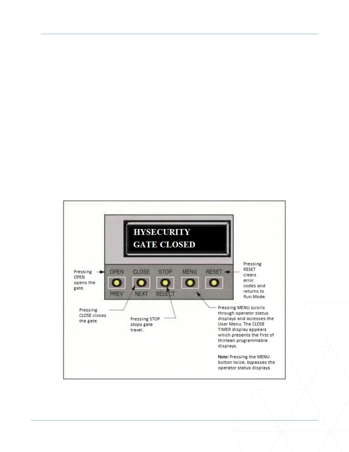 • Menu Mode - motor disengages and operator commands are ignored. Menu navigaon and menu