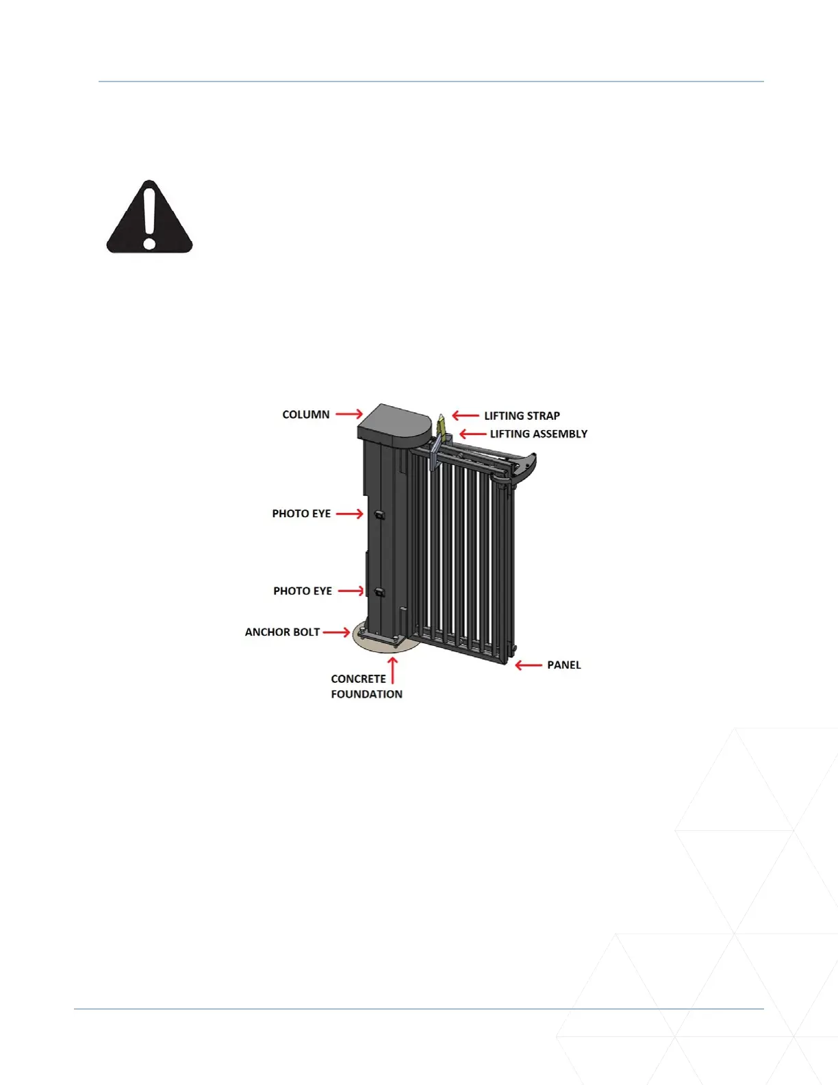 unbolted from the shipping skid. Once all bolts are unfastened raise the gate up and place onto the