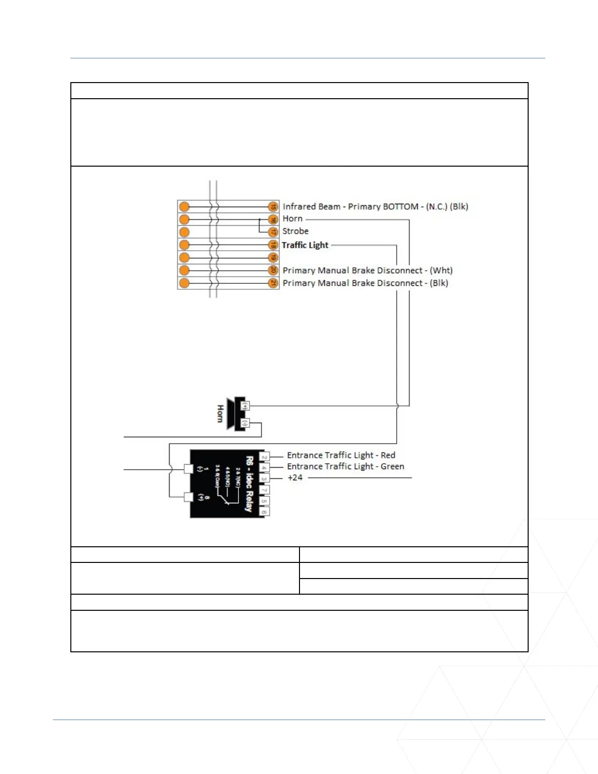 24VDC trac light inputs: Terminal (-) #18, red light into Relay 06 terminal #2
