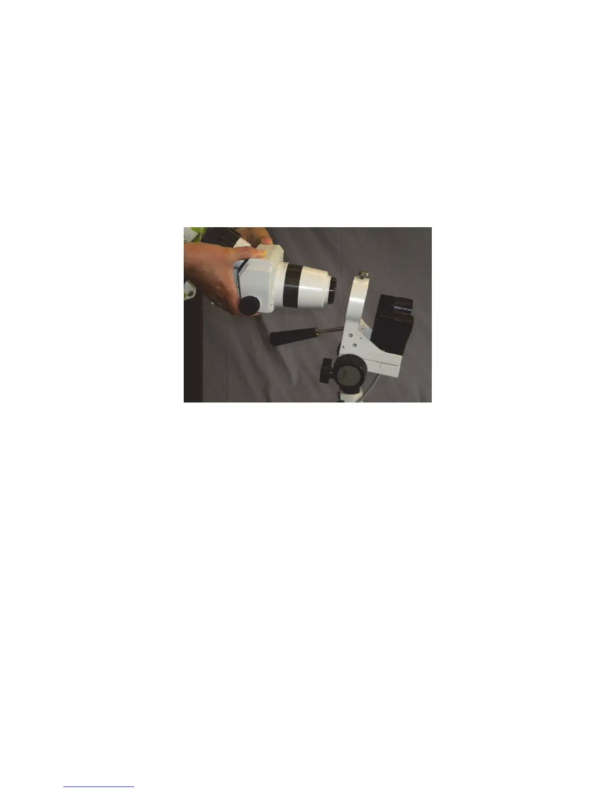 3. Place the microscope head into the retaining ring with ocular tubes pointed upwards. Hand-