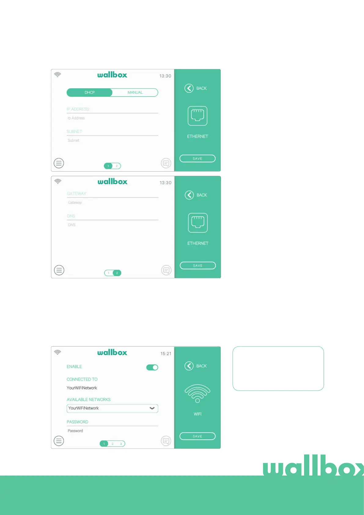 To connect the charger to a WiFi network it is necessary to switch on the charger's WiFi connection by pressing