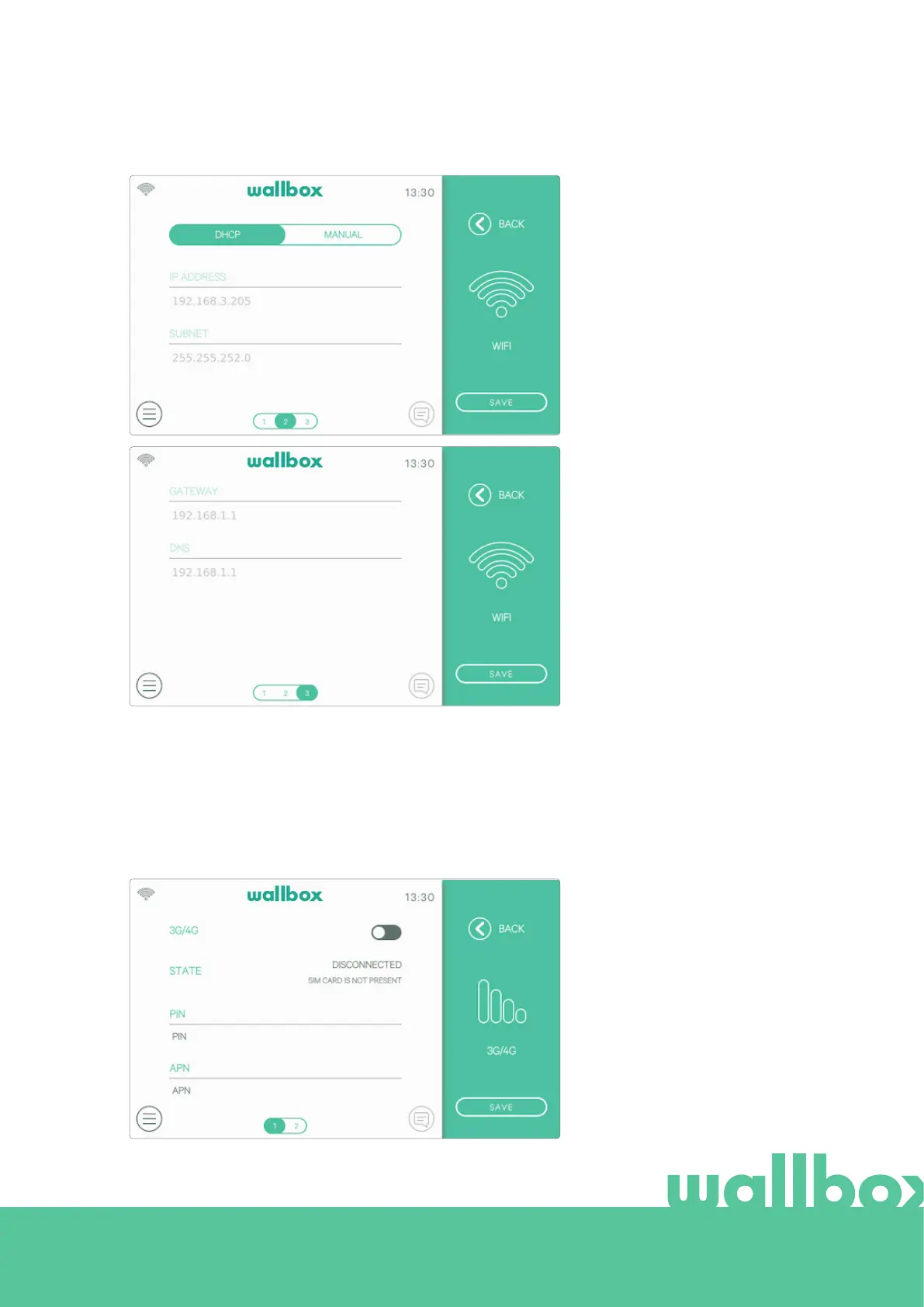 connection and enter the configuration parameters provided by the SIM provider. Then press the Save