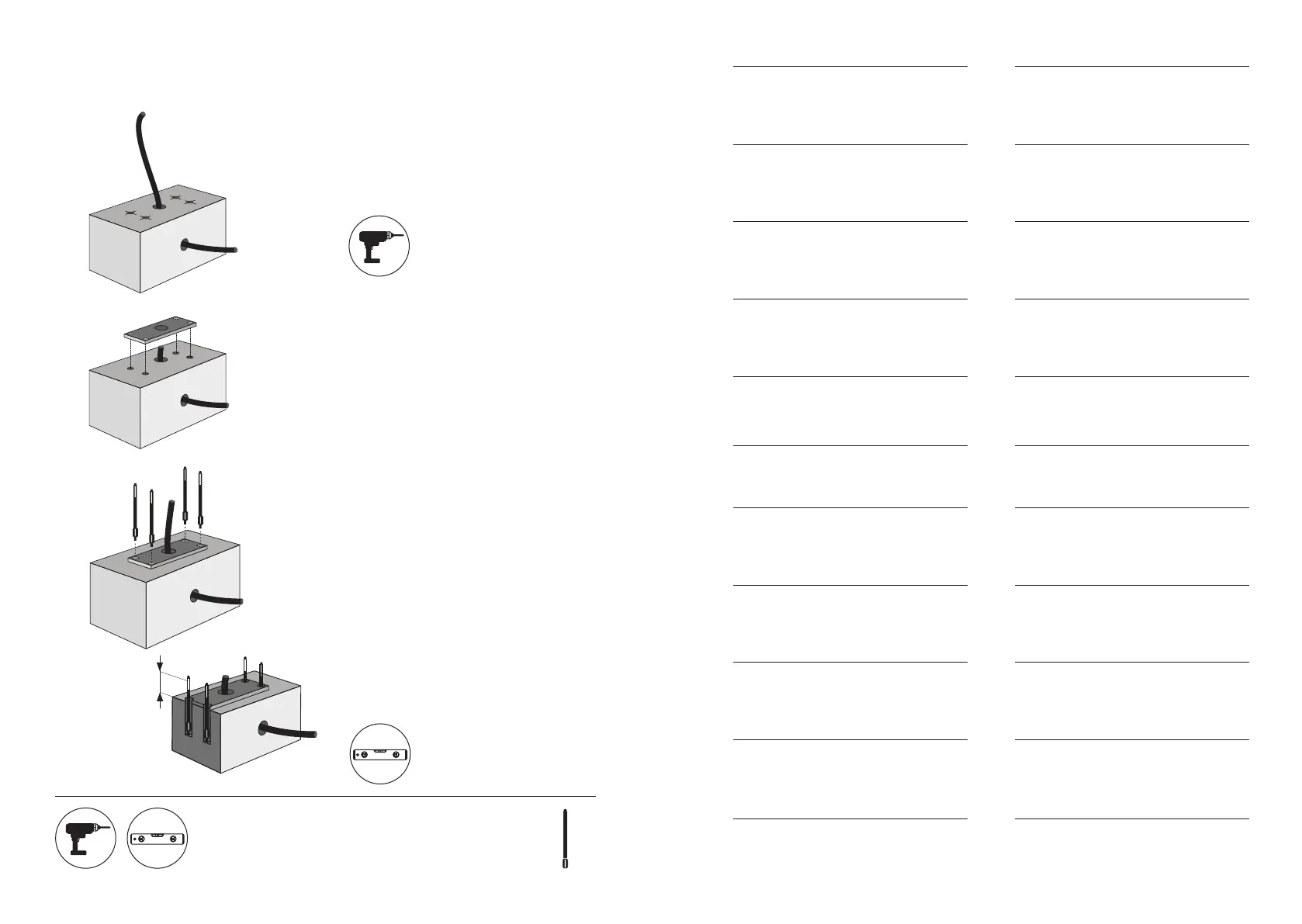 E. Insère les vis d’ancrage dans les trous de la plaque et de la fondation