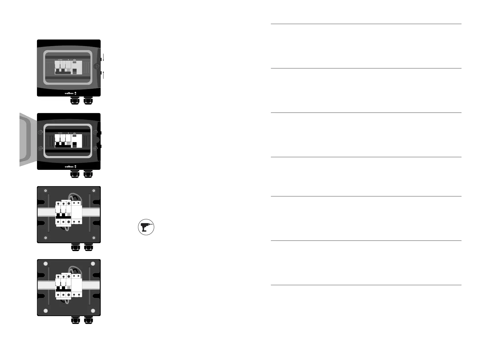 C. Bohren Sie alle 4 Bohrlöcher und befestigen Sie das Gerät an der Wand.