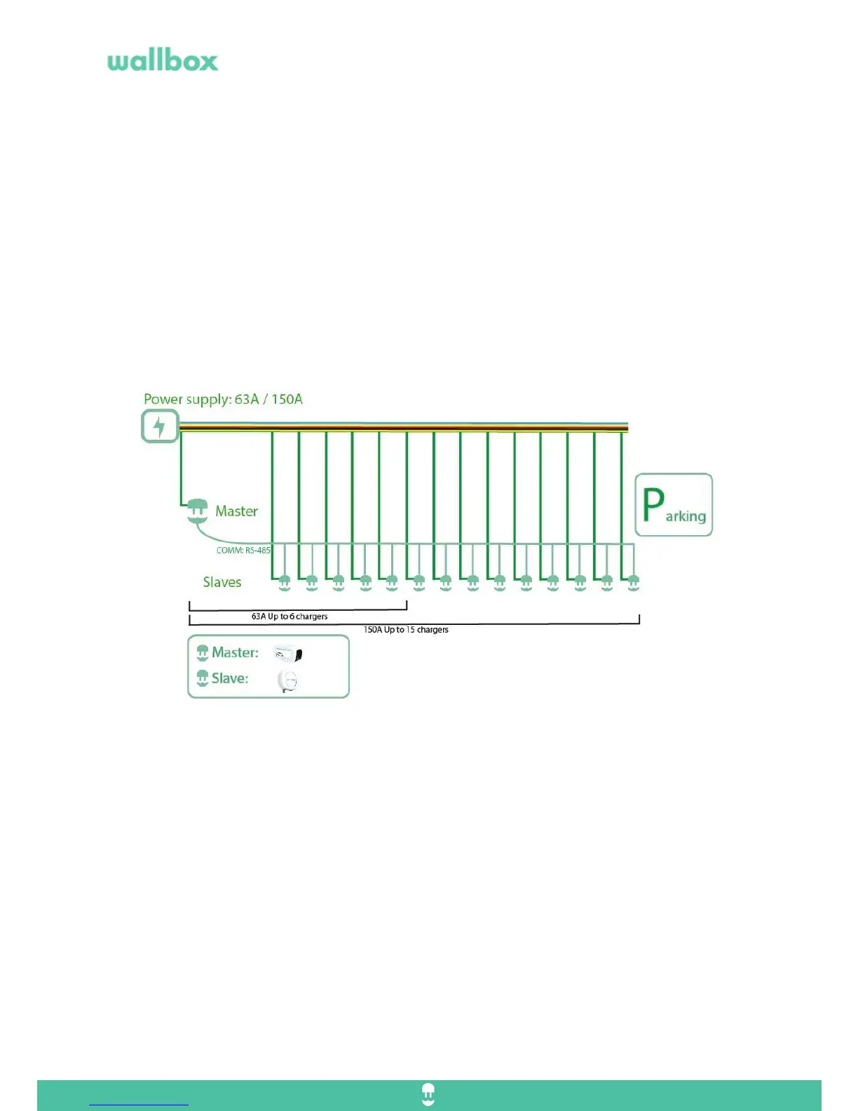 System with 6 chargers – 1 Master + 5 Slaves (system only start acting with minimum 3 chargers)