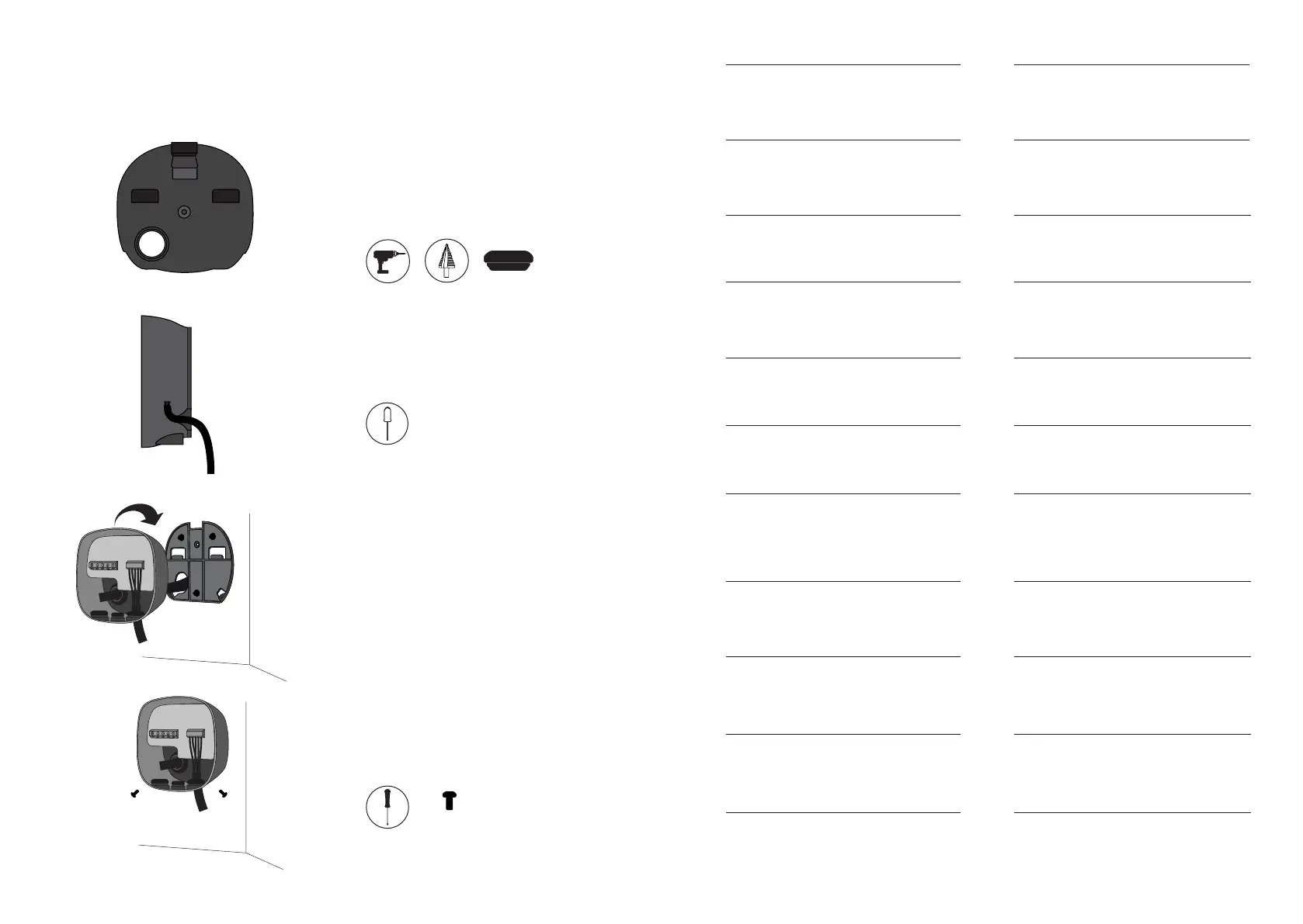 4. Festu hleðslutækið við veggplötuna með viðeigandi skrúfum.