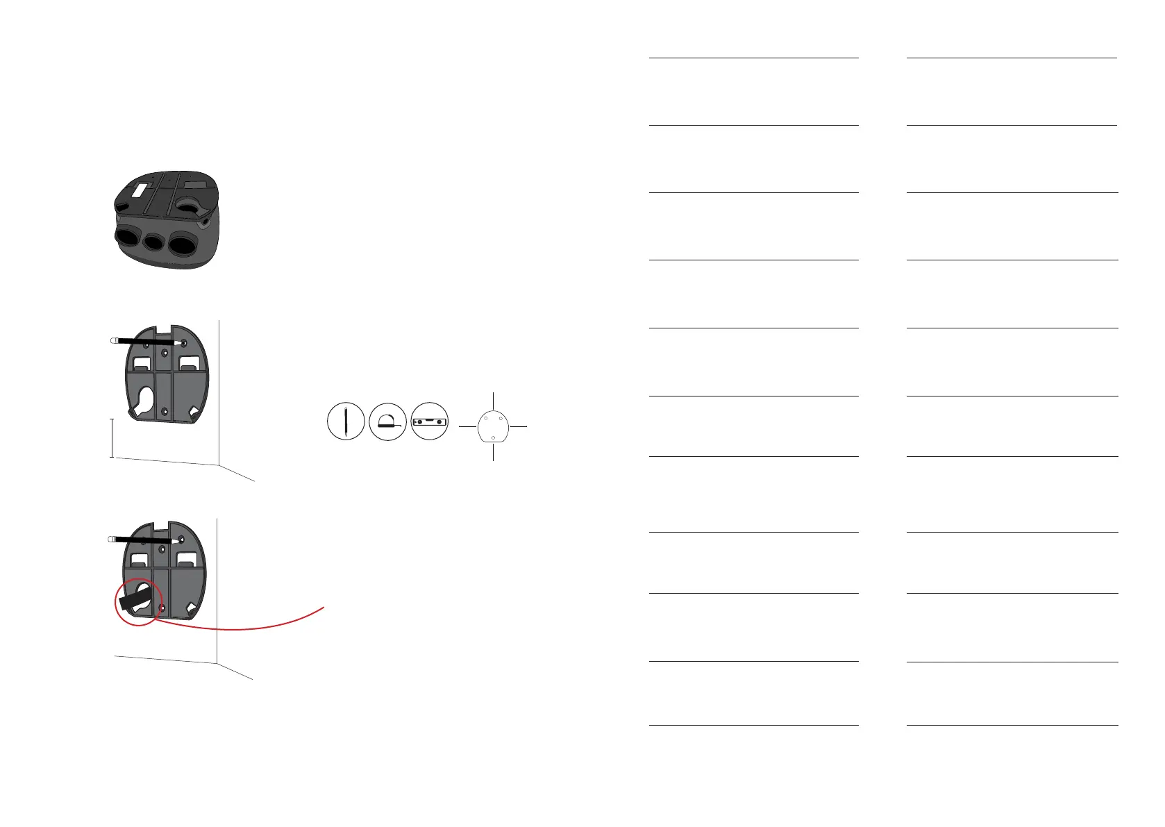 2. Aseta seinälevy suoraan. Merkitse reikien sijainti lyijykynällä.