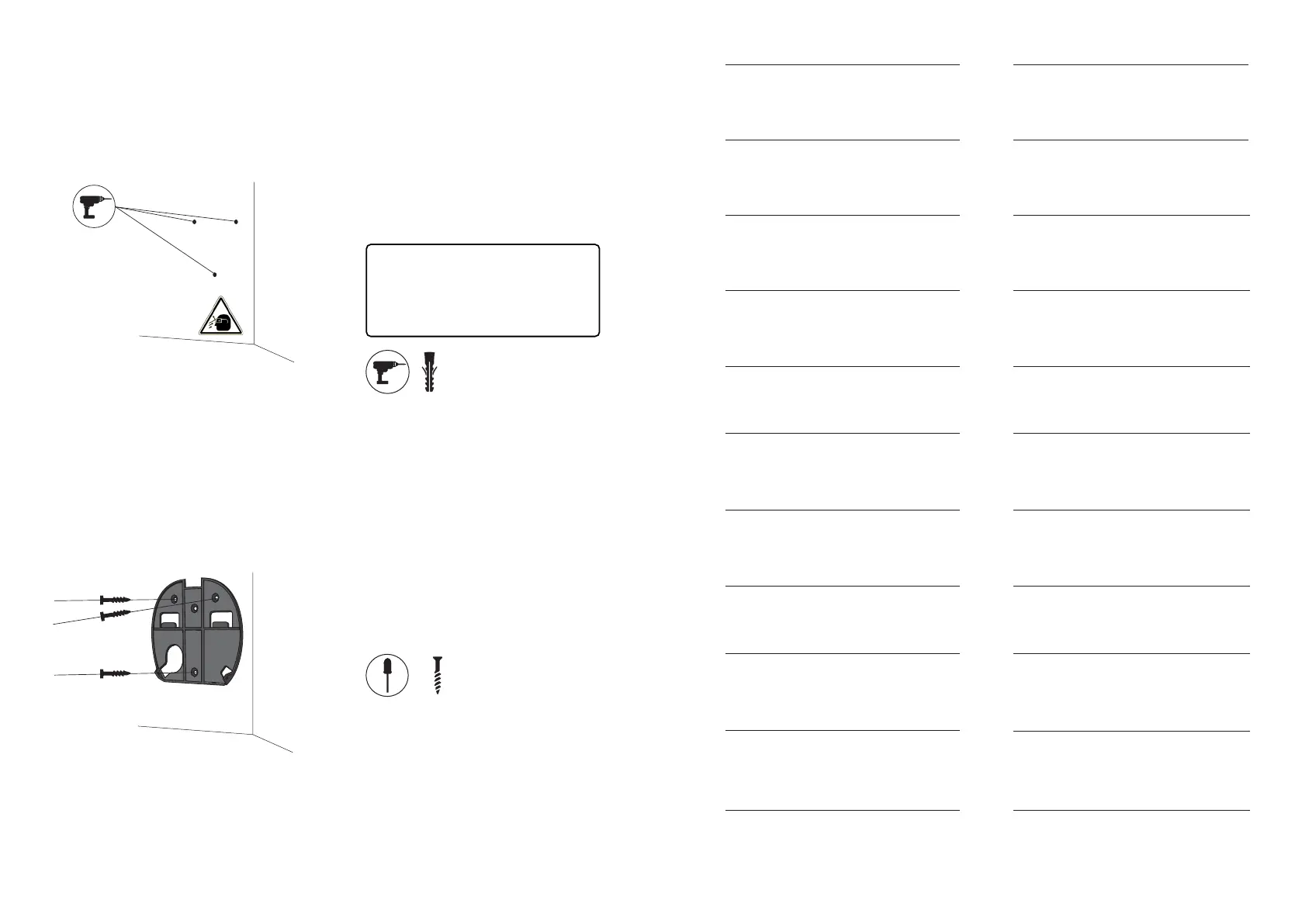 Si vous montez votre chargeur sur un mur plein, utilisez les chevilles fournies avec