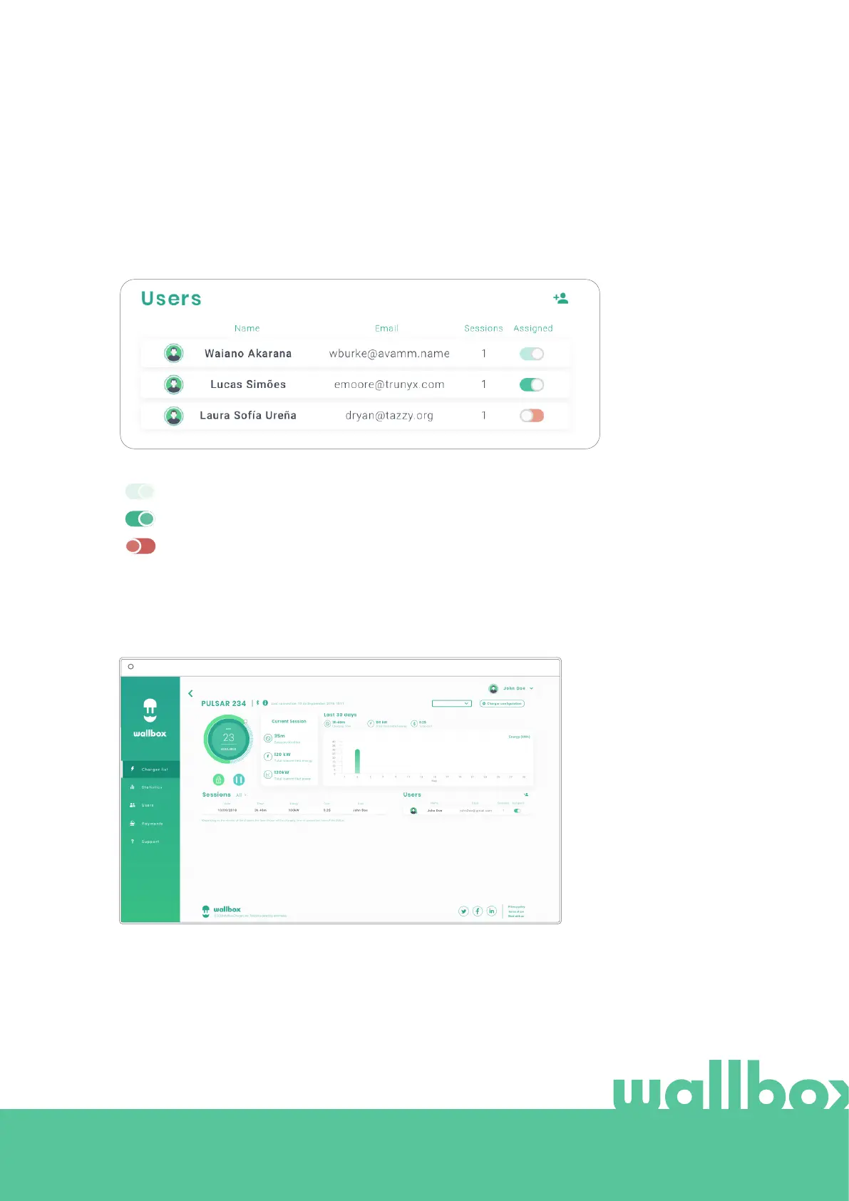 User assigned to the charger. By clicking on the switch, the user is unassigned.