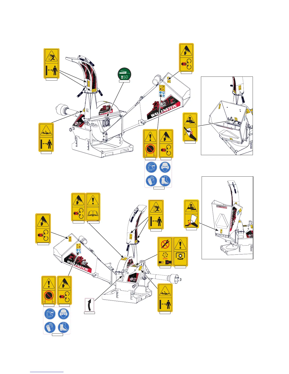 The BX52S is illustrated, labels and locations are the same for BX72 and BX102 models.