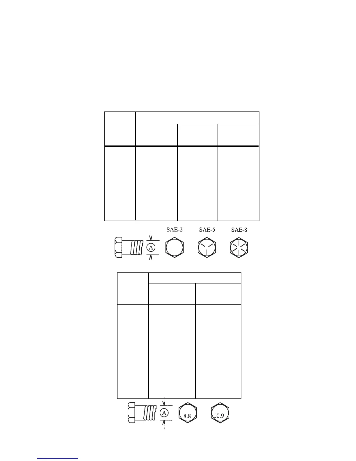 The tables shown below give correct torque values for various bolts and capscrews. Tighten all bolts to the