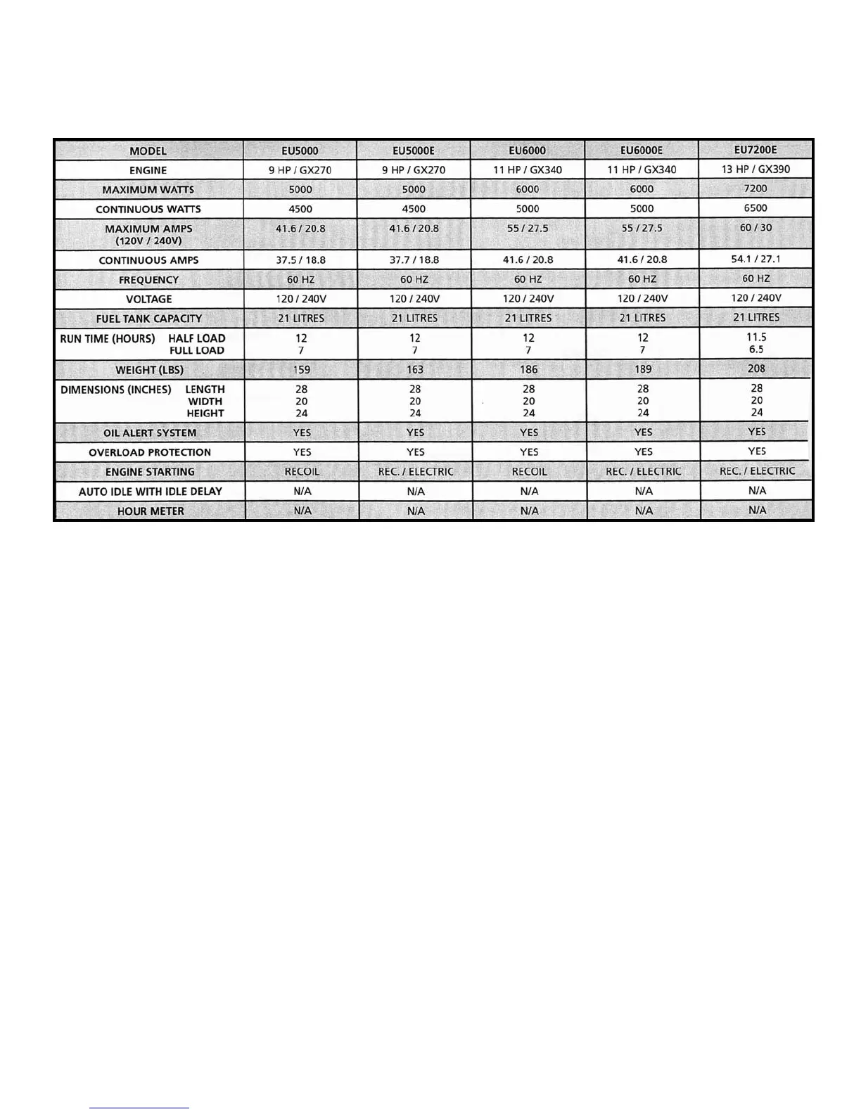 Wallenstein EU7200E - Specifications; Mechanical