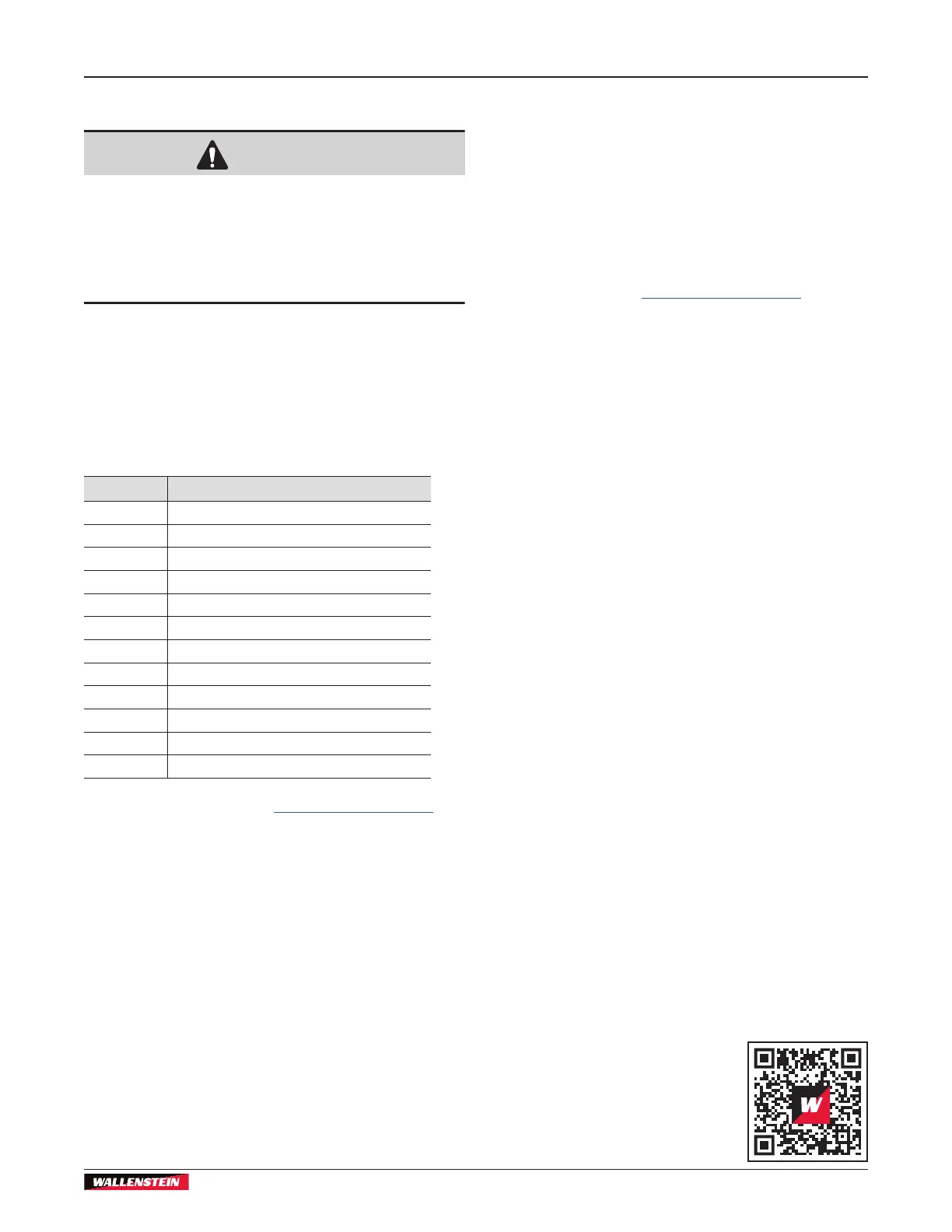 For support or service, contact your local Wallenstein Equipment