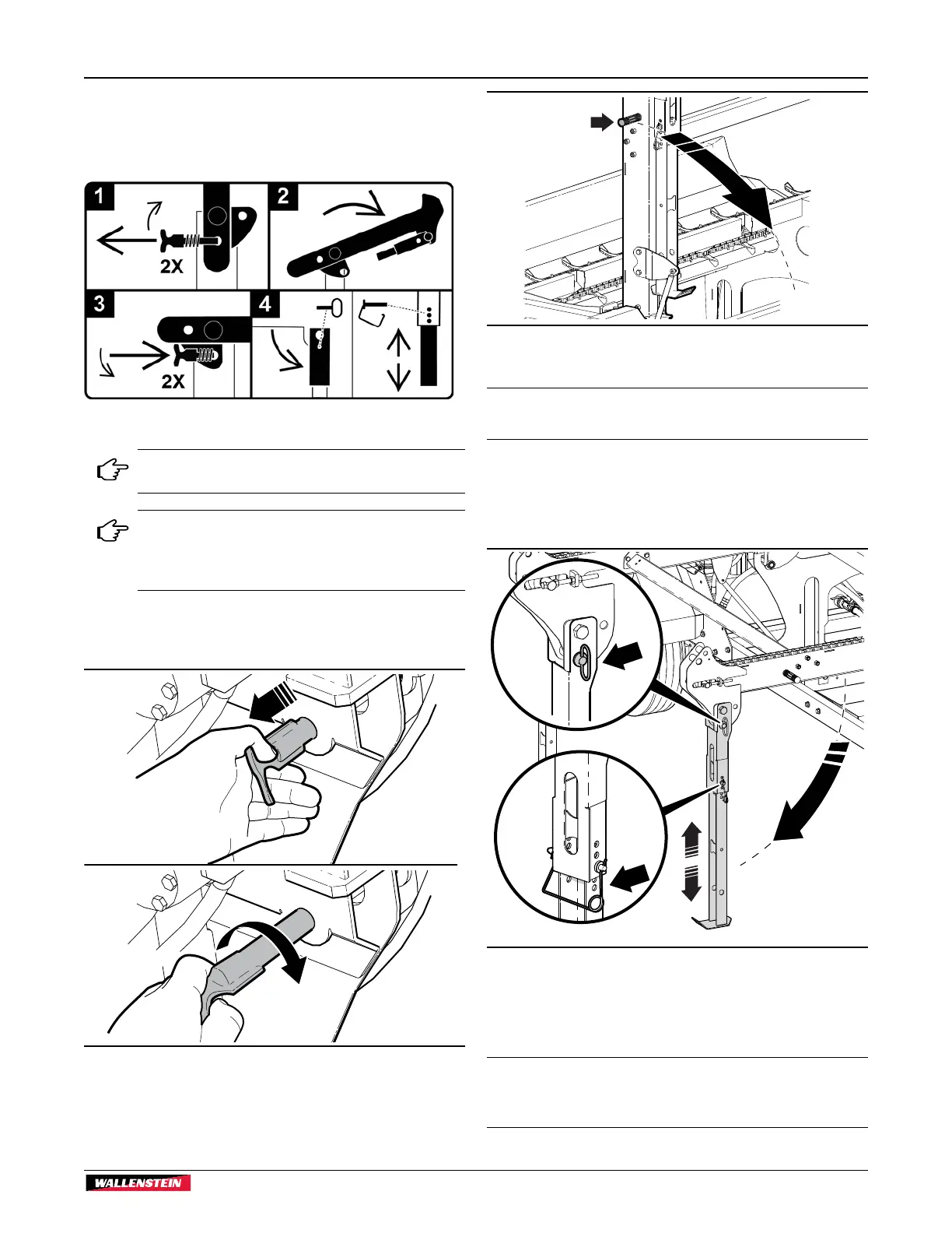 3. Pull, turn and reinsert the deck pins to lock it in position.