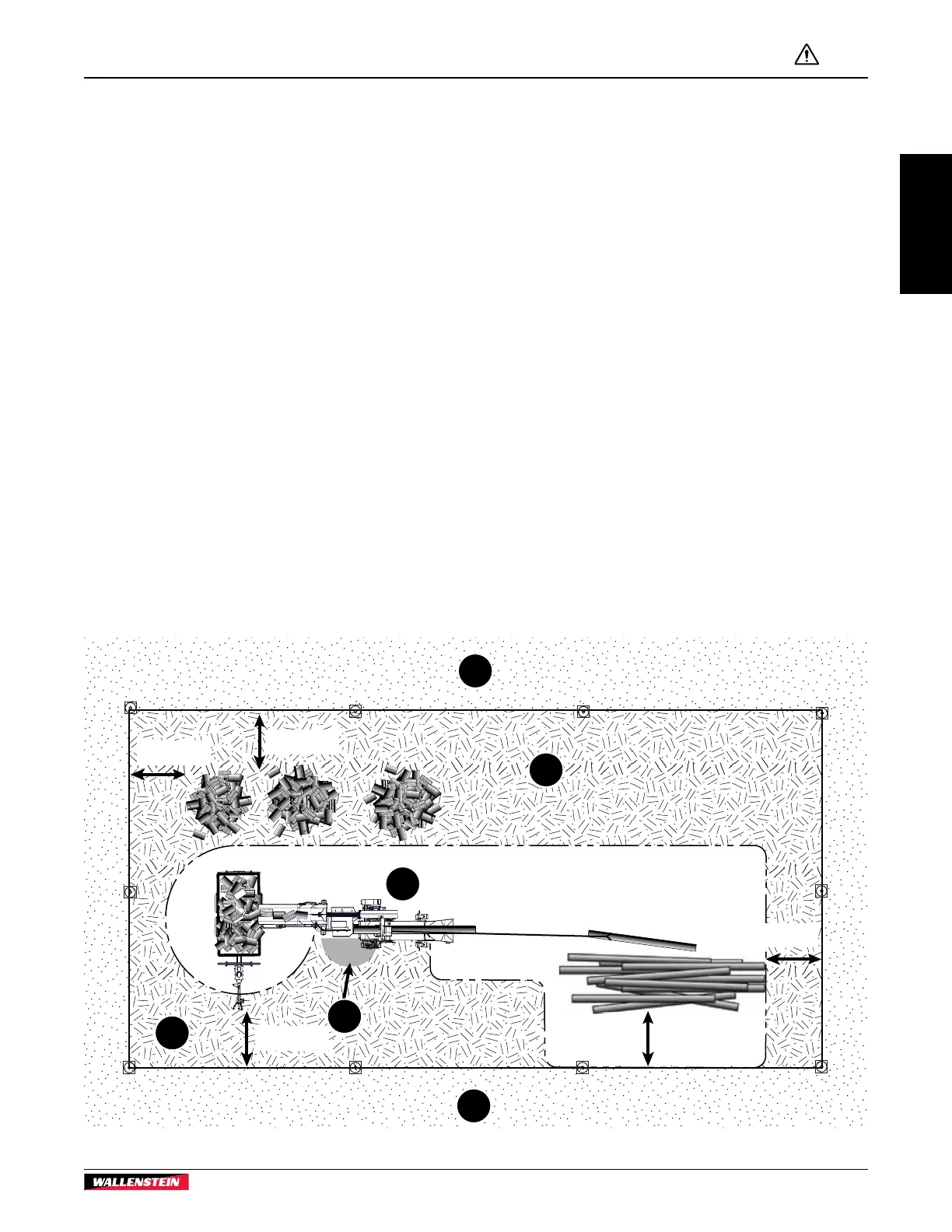 • Use extreme caution around the material stacks. Stacked