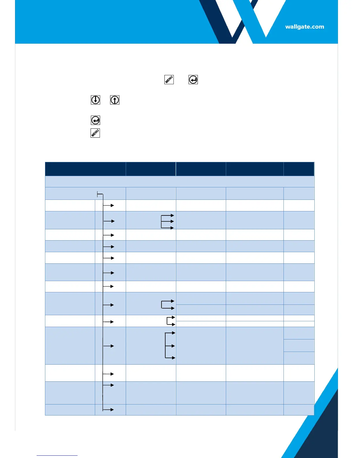Table 5. WDC100 Menu Settings