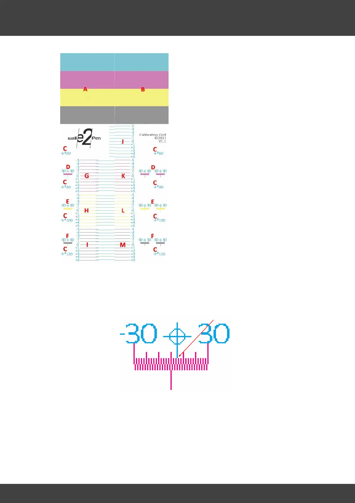 +/- 30 pixels at 300 DPI for Magenta (D),