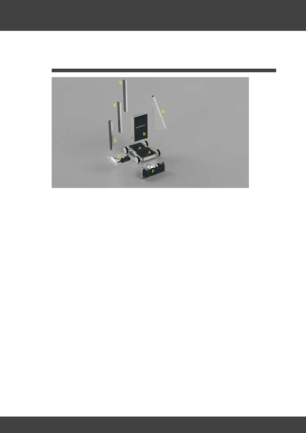 Base frame with two drive wheels in the rear and two steered wheels in the front.