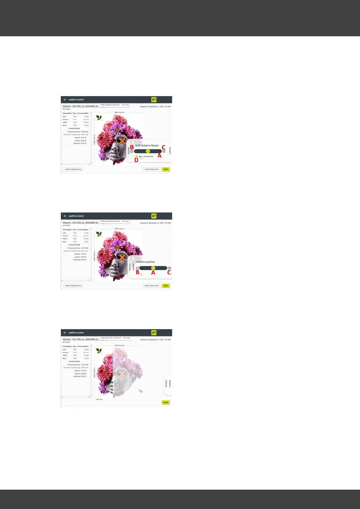 I - Direct access to the distance control of the printhead to the wall. Press the term
