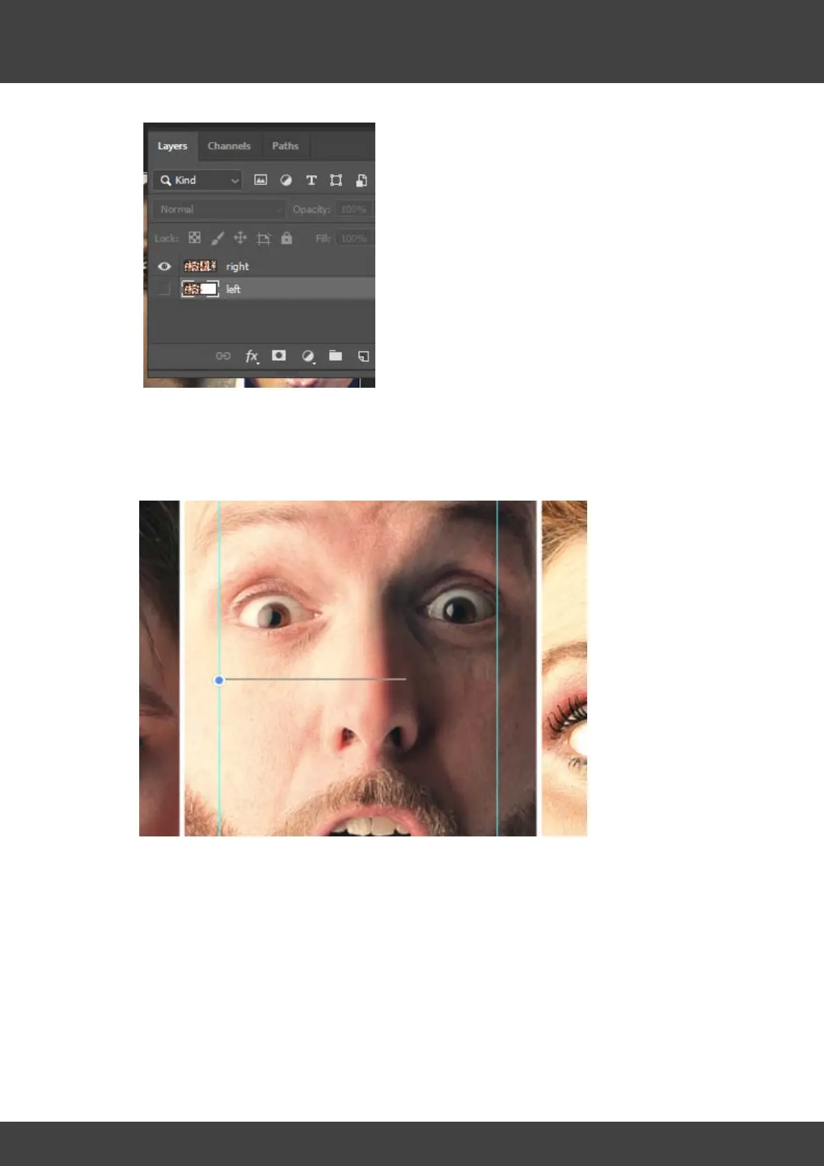 12. Click and hold the mouse cursor somewhere on the left help line (the blue dot in the